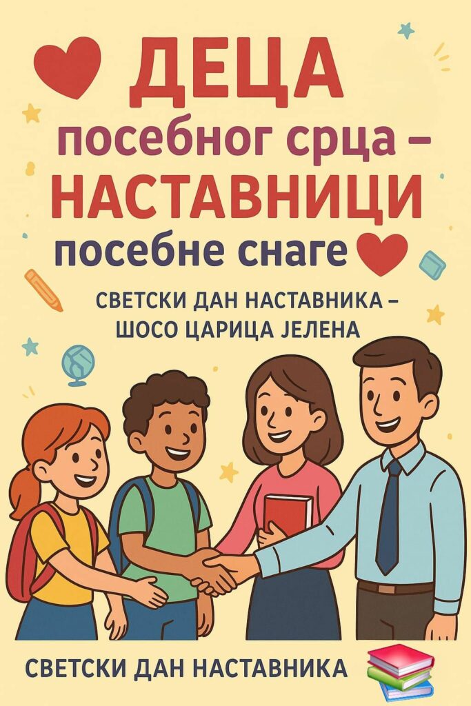 Драги наши наставници, данас славимо ваш труд, стрпљење и огромно срце које свакодневно улажете у своје ученике. Ви сте светлост која осветљава пут знања, разумевања и љубави. Хвала вам што верујете у свако дете, што подржавате, охрабрујете и никада не одустајете.